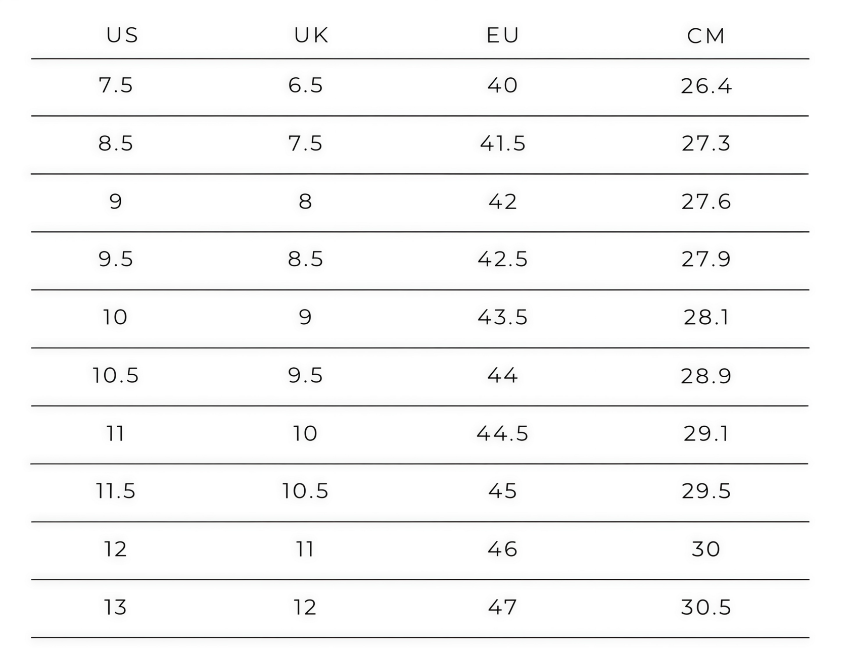 таблица размеров